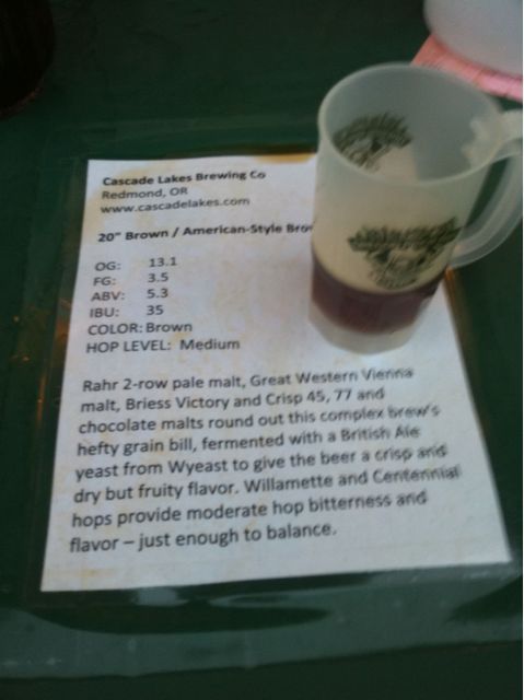 Things were still pretty busy, but I found my way back to the Oregon beers at the Oregon Brewers Festival. And now that it had been a long enjoyable day drinking beer, I was feeling a like having more malty beers rather than the big hop bombs I was having earlier in the day. When I saw the name on this one from Cascade Lakes Brewing in Redmond, OR, I knew it would probably fit the bill.