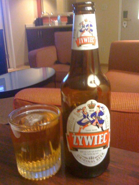 Since I was in Chicago, and there was a place across the street from the hotel that sold some local fare, I thought I’d stop and pick up a nightcap of something I couldn’t find in Central Illinois. Unfortunately, the selection wasn’t great, but the clientele must be Polish, because they had 4-5 different types of Polish beers. I just decided to pick one and went for Zywiec.