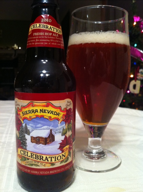 I spent most of the day cleaning up and setting up my kids new Christmas presents, so I was ready for a good beer. This one came highly recommended, so I picked up one in a mix-a-six. The bottle says, “Celebration ale is a special ale for the holidays. Featuring the first hops of the growing season, this pioneering IPA is full of complex flavors and aromas from the generous use of whole cone American hops. 6.8% ABV”