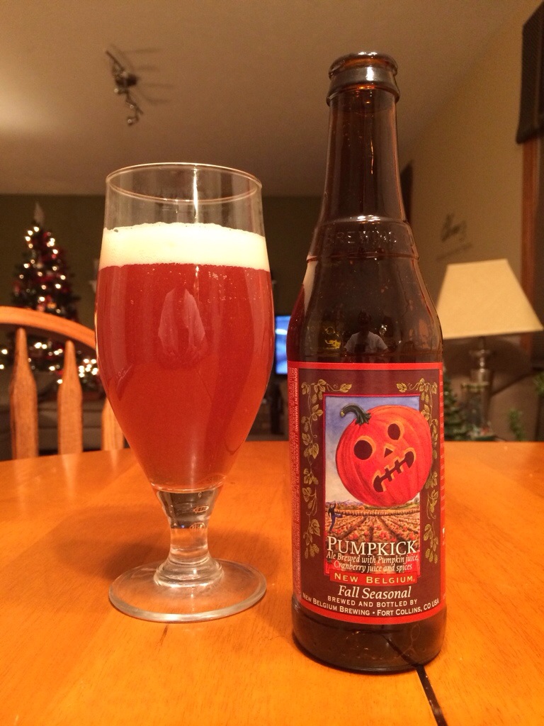 It’s Monday night, and the trash is out, the kids are in bed, and it’s time to sit down and enjoy a beer while I watch some TV. Since it’s that time of year, I found this pumpkin beer out of the grocery store and thought I’d give it a try, since you know I enjoy the occasional pumpkin beer. I think New Belgium makes some pretty good stuff, and this one has pumpkin as well as some cranberry in it, which I thought made it pretty unique.