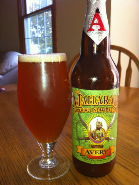 Things are becoming a bit overwhelming at home and at work, and, more than ever, I’m looking forward to my trip to Beervana next week. Usually after a day like I’ve had today, I reach for a nice stiff glass of bourbon, but instead, I decided it was time to crack open one of my bottles of Avery’s Maharaja Imperial IPA. The bottle says, “Maharaja is derived from the Sanskrit mahat, “great” and rajan “king.” Much like its namesake, this Imperial IPA, is regal, intense, fierce and mighty. With hops and malt as his servants, he rules both with a heavy hand. The Maharaja flaunts his authority with a deranged amount of hops: tangy, vibrant and pungent, along with an insane quantity of malted barley, or fashioning a royal scarlet hue in an exquisite malt essence. Welcome to his kingdom!” It was bottled in June 2009 and was Batch 10. It was 1.090 Original Gravity with a finished ABV of 10.69%, and 102 IBU’s.