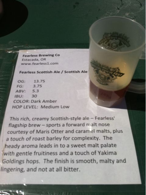 I was enjoying the Oregon Brewers Festival and wanted to make sure I could try as many local brews as I could. I had never heard of Fearless Brewing, but it said it was from Estacada, OR.