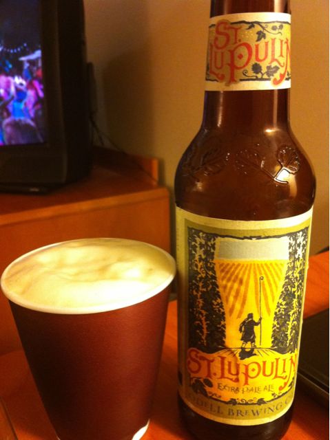 A friend from my homebrew club – the ABNormal Brewers – mentioned that he had met someone from Odell Brewing and was a big fan of their beers. And, since we don’t get them in central Illinois yet, I thought I’d give their seasonal – St. Lupulin Extra Pale Ale – a try. It helps that I suspect by the name that it’s going to have a nice hop flavor to it. The bottle says, “A mystical legend echos in our brewhouse – that of St. Lupulin the archetypal hophead. He devoted endless summers to endless rows of hops, tending to the flowers and the beloved resin within – lupulin. Extraordinary oils in this yellow resin provide this dry-hopped extra pale ale with an undeniably pleasing floral aroma and clean, crisp finish. One sip of this seasonal summer ale and you, too, will believe.”