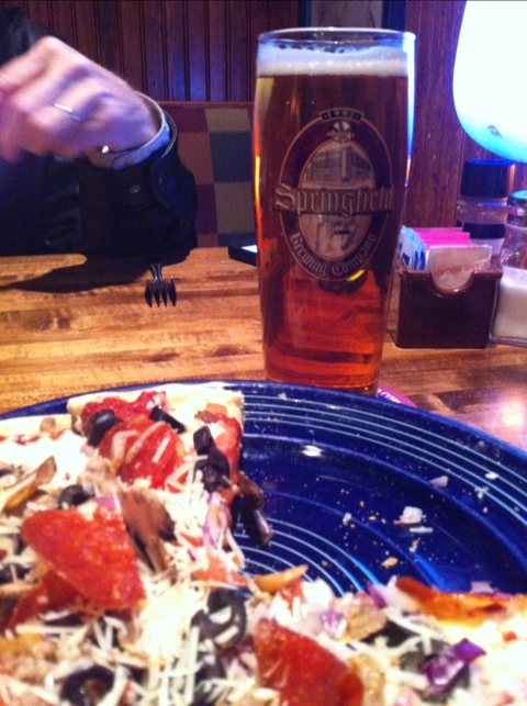 The deluxe pizza I had was very good and seemed to have some pretty fresh ingredients, although I also envied the fish and chips Steve ordered. The Pale Ale probably would have gone with either meal very nicely, as the breadiness of the beer went well with the crispy crust on the pizza. I’d be willing to be that it would be a good beer with almost any item on the menu.
