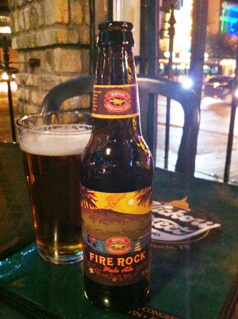 I’m down in Austin, TX for SXSW and my new friend Robert and I headed out on the town to try to find a place to eat. We found The Hickory Street Bar & Grill, which had a nice patio looking out on to Congress Ave. Although I know it’s probably made by one of the other Craft Brewers Alliance breweries, I was glad to see beer from Kona Brewing on the beer list. I haven’t had any of their beers, but they sounded interesting, so I was looking forward to trying them.