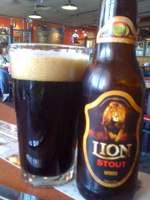 I’m finally back from my travels, and we took the kids to the zoo in Peoria today. We stopped at Old Chicago on the Peoria riverfront for lunch before heading home. Unfortunately, their draft beers were in transition, so I took the opportunity to try the most unique beer I could find on the menu. It said Lion Stout was brewed in Sri Lanka, so I thought I’d give that one a try.