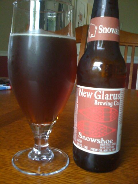 I went into the beer fridge and found a New Glarus Snowshoe Ale from this past winter’s trip up to Wisconsin Dells. We got a chance to stop by the brewery on our way home and I bought a mixed case of New Glarus beers to bring back. Unfortunately, there are only a few left. I wouldn’t recommend going out of your way to visit the brewery, as it is a self-guided tour, and most everything was hidden behind walls and windows. However, if you’re in the area, they do have excellent beers, and there’s no better way to sample it than right there at the brewery.
