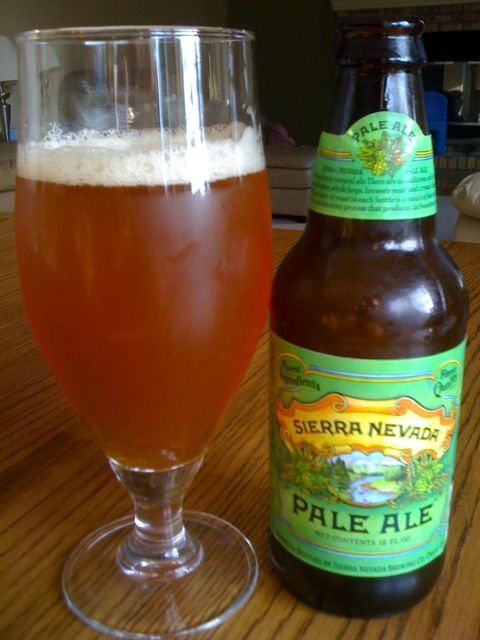 I’ve been in a bit of a funk lately (and no, it has absolutely no connection to last night’s episode of Glee) and I was really in the mood for a top-notch beer. So, tonight I grabbed the Sierra Nevada Pale Ale which I had been waiting to drink. The bottle says “Sierra Nevada pale ale is a completely natural ale. There are no additives, only the finest malted barley, whole hops, brewer’s yeast, and crystal clear water. The fine layer of yeast in each bottle is a result of the traditional bottle conditioning process that produces carbonation naturally.” Additionally, it says that it is 5.6% ABV.