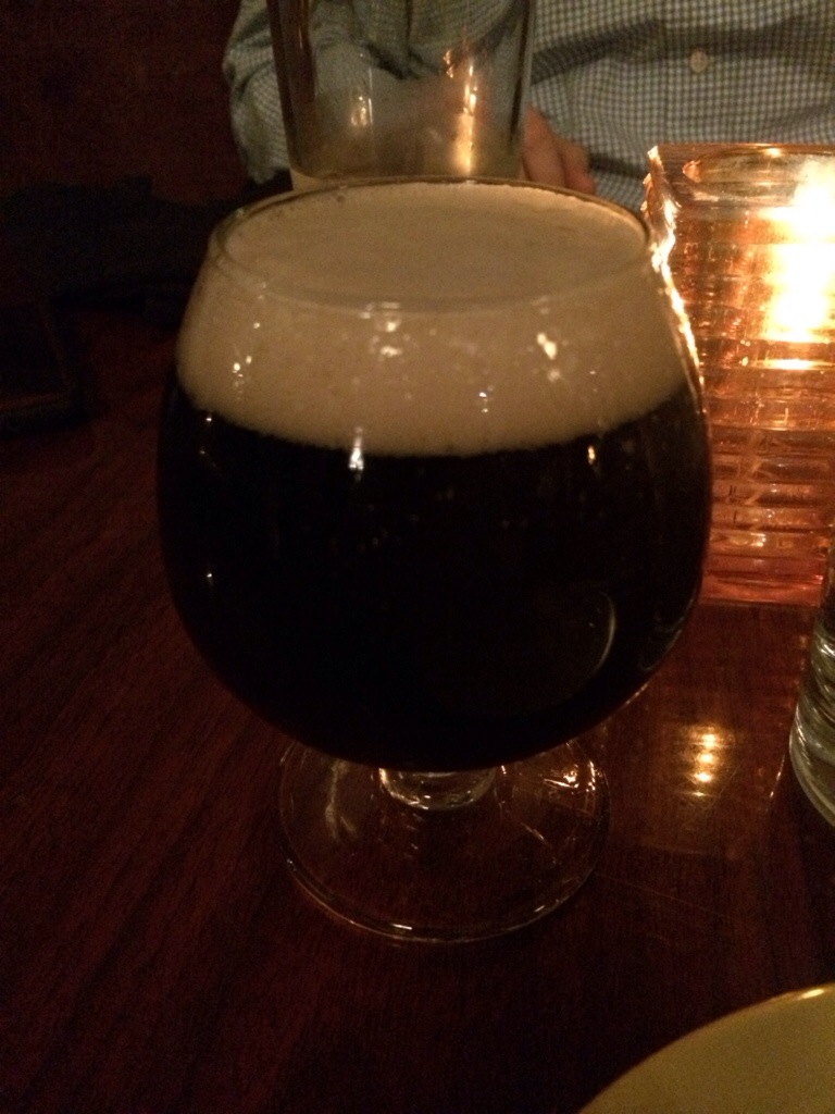 My friend Joe is in town this week for work, and this is his last night in town. We were looking for a good place to eat that also has some decent craft beers on tap. I got a reservation at Reality Bites, a nice restaurant in town that usually has 6 or so pretty good beers on tap. I was excited when I saw this beer on tap, because my friend Tom from our local homebrew club raved about it when he had it. Both Joe and I went for this black IPA.