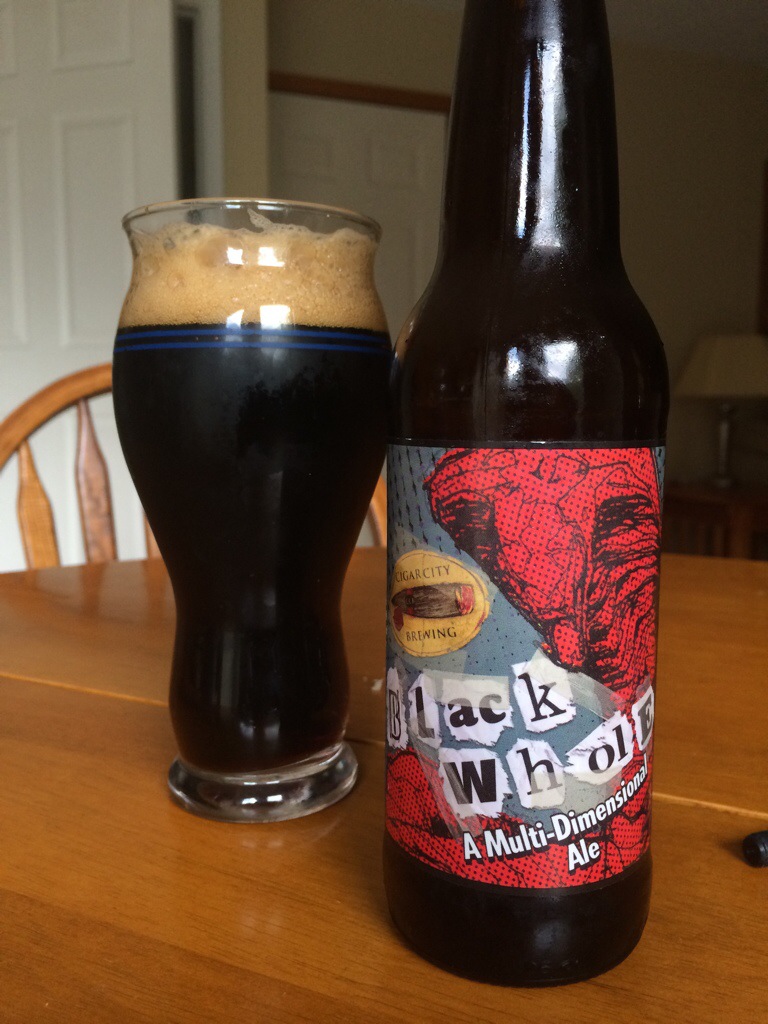 The bottle says, “Black Whole is a multi-dimensional ale that takes many twists and turns similar to our daily lives. It has a big chocolate expression with moderate caramel notes, complex toasted to biscuit notes and hints of clove and black licorice. Don your chocolate mask and discover the meaning of life as you said this complex, dark beer.”