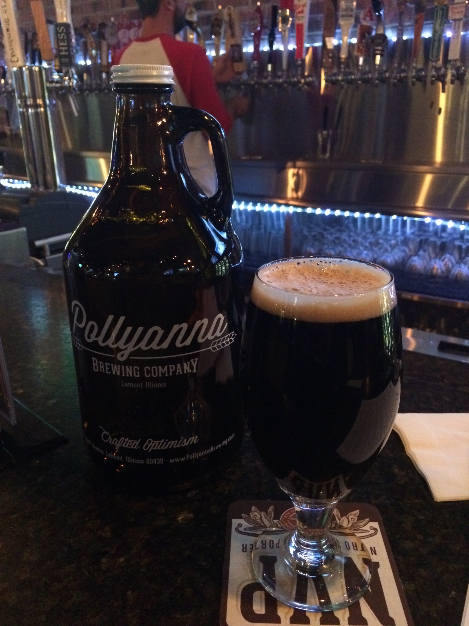 As I mentioned in my last post, I’m at Beer House Chicago and they’re having a special event with Pollyanna Brewing Co, a new brewery in Lamont, IL. Since the beers were on special, and since it was a new brewery to add to the list, I had their Mazzie Pale Ale, and decided to follow that with this one. In addition, I won a growler and a coupon for a free growler fill at their brewery.