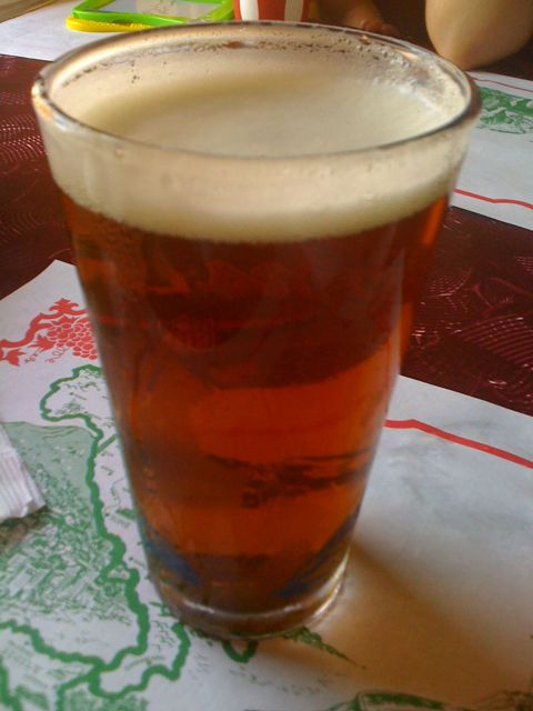 The Mad Hatter was extremely clear and was a light amber color. It had a nice, very creamy head (as you can see here), with a nice light floral-type hop aroma and maybe a bit citrusy.