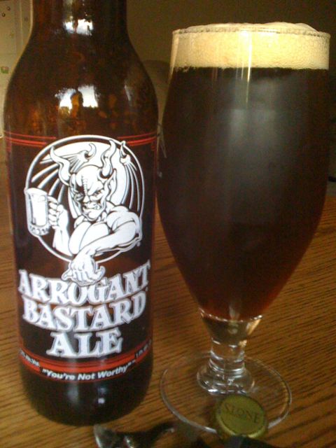 It’s been an incredibly crazy couple of weeks and there’s not much sign of things letting up. I’ve been trying to catch up on my reviews, but I figure there’s no better time to break into the Stone brewing beers my friend from San Diego sent me than a nice Friday evening. The kids are having a slumber party with their cousins and I’m ready to finally try the Arrogant Bastard I’ve heard so much about.