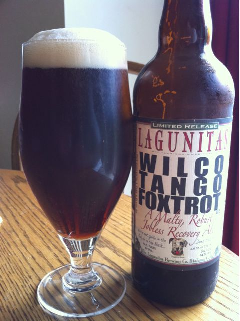 Well tomorrow I leave to go on my Cuisinternship, and I only wish I could spend more of today preparing for my trip. Instead, I’m trying to get some last minute work done for my job. I’m having some difficulties, and so, since I’ve found myself saying WTF all day long, I decided to break open a Lagunitas Limited Release named Wilco Tango Foxtrot Ale, or WTF. The 22oz bottle says that it is “A Malty, Robust, Jobless Recovery Ale.” It also says that it is 7.83% alcohol by volume and have an original gravity of 1.072 with 64.2 IBUs.